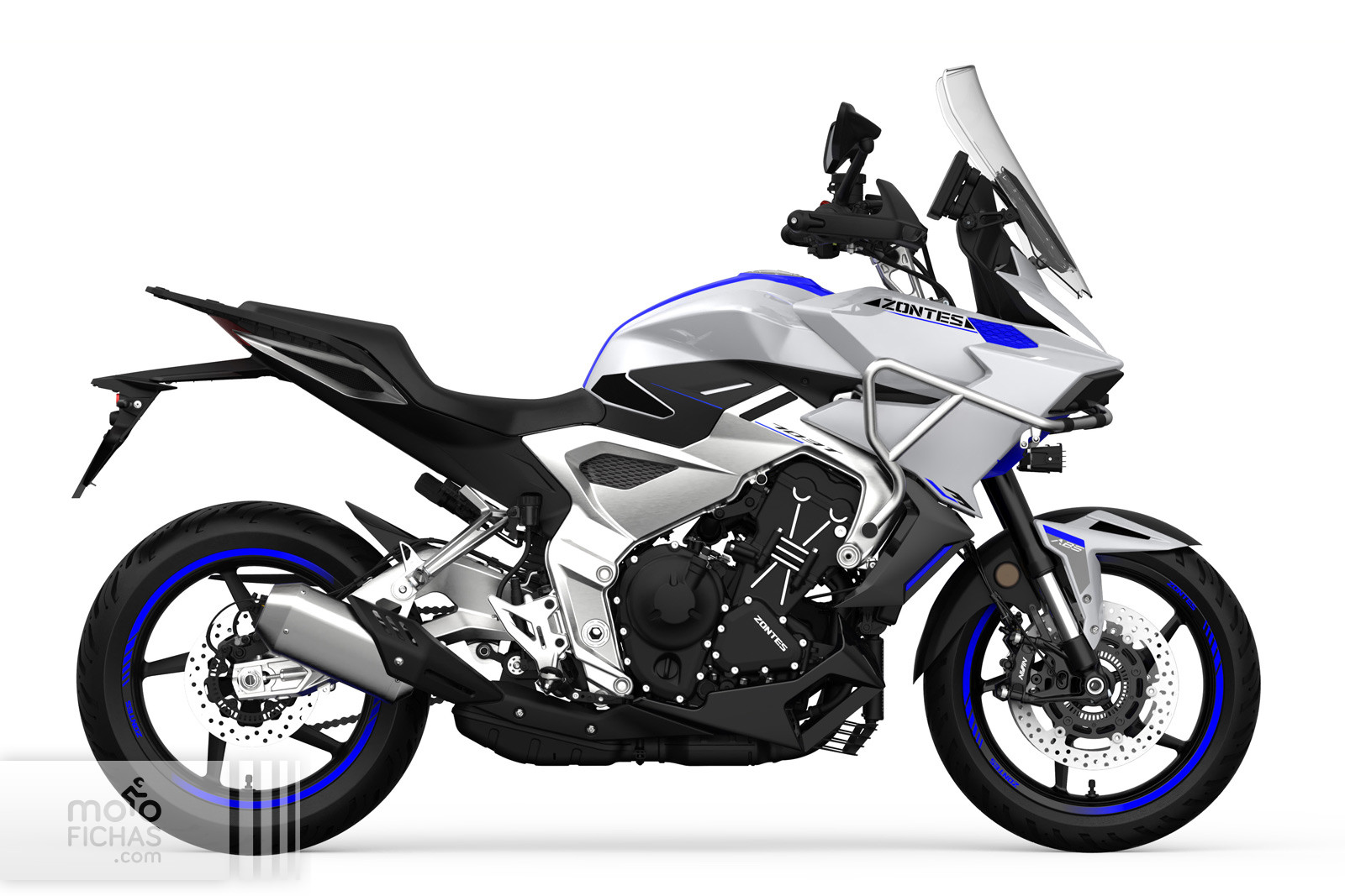 Based on the hugely successful Zontes ZT703-F, this new model is aimed at the adventure tourer market. Fitted with road tyres and 17 inCh wheels, this bike will highly manoeuvrable and with a proposed dry weight of just 206KG.